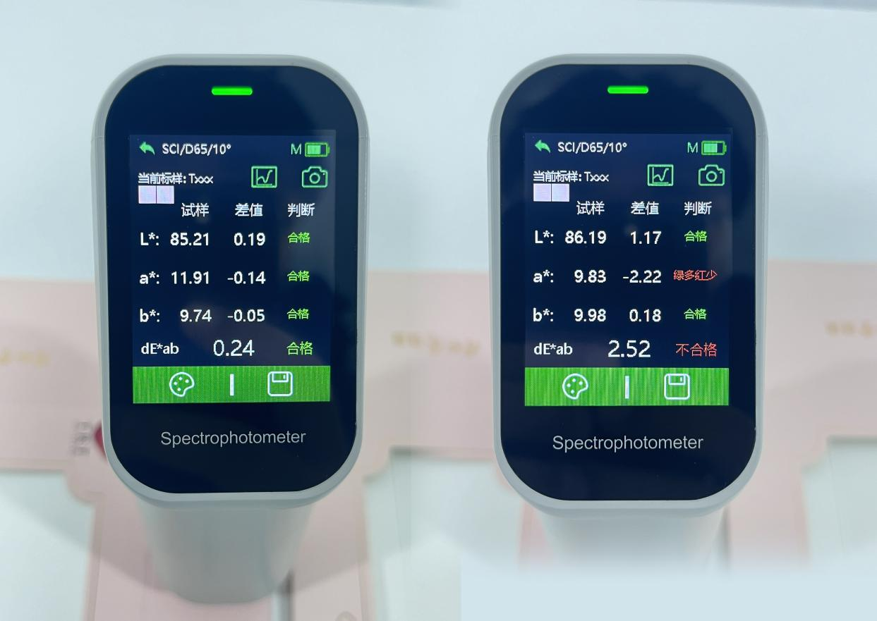 當(dāng)使用DS-220色差儀進(jìn)行顏色測(cè)量時(shí),除了能看被測(cè)顏色與標(biāo)準(zhǔn)顏色之間有沒有存在色差之外,還能提供關(guān)于顏色偏向的指引,這對(duì)于幫助客戶更好地調(diào)色非常有用。