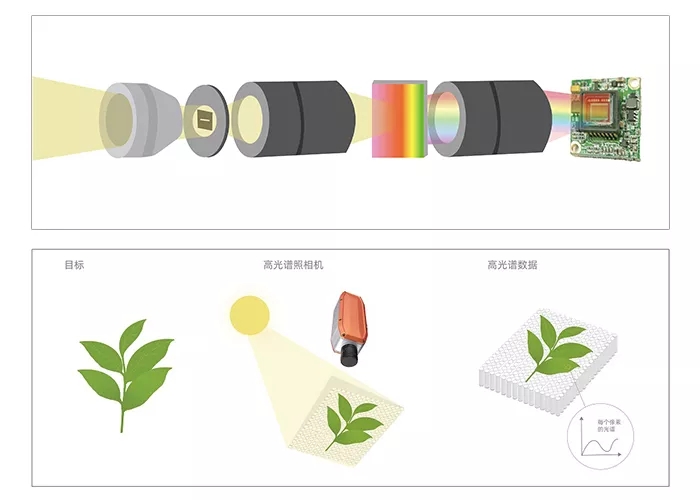 高光譜相機的工作基于分光技術(shù),即利用分光器將入射光分解為不同波長的單色光,并通過一系列精密的光學(xué)系統(tǒng)和探測器,分別測量每個波長下目標物體的反射或發(fā)射強度。這些數(shù)據(jù)隨后被整合成三維數(shù)據(jù)立方體,供后續(xù)處理和分析使用。高光譜相機的高分辨率光譜特性使得它能夠捕捉到傳統(tǒng)相機無法察覺的細微光譜差異,進而揭示出物體表面的化學(xué)成分、物理狀態(tài)以及環(huán)境條件等信息。