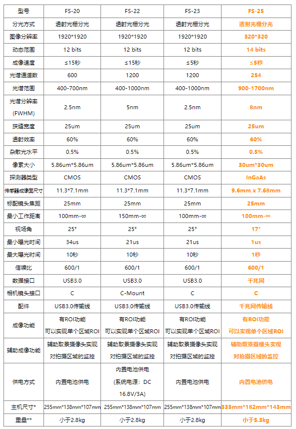 以下是彩譜FS2X系列成像高光譜相機(jī)的技術(shù)參數(shù):