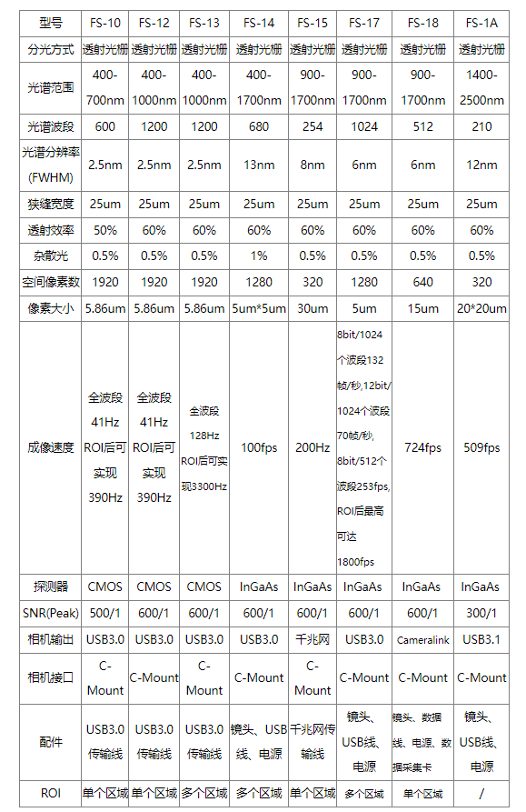 以下是彩譜FigSpec FS1X系列以及技術(shù)參數(shù):