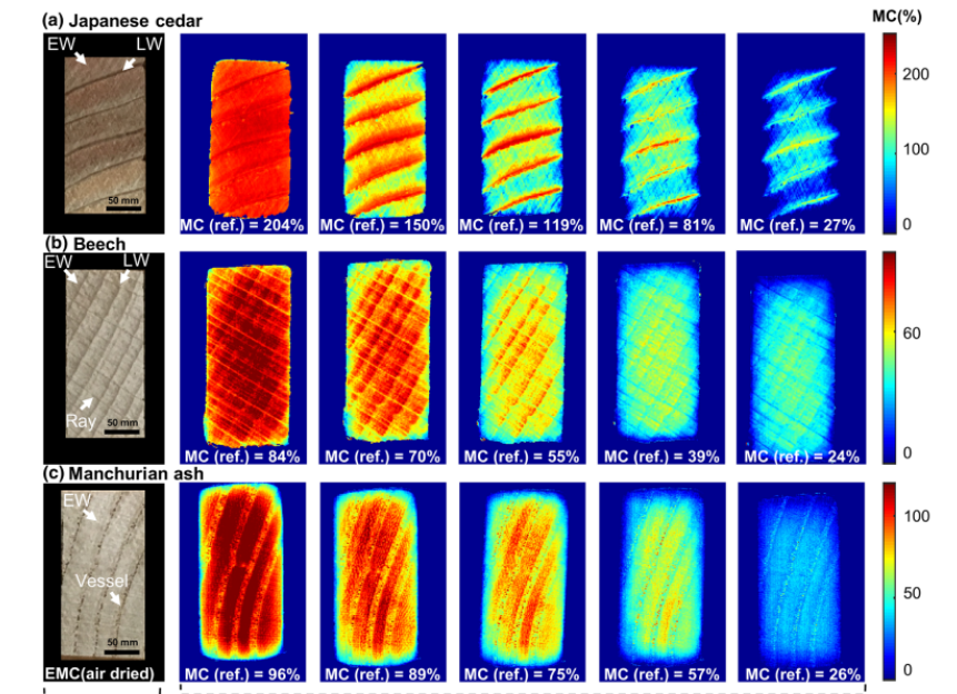 實(shí)驗(yàn)材料:使用多塊具有不同含水率的木材樣品作為實(shí)驗(yàn)材料,這些木塊經(jīng)過(guò)循環(huán)干燥處理,以獲得不同的含水率狀態(tài)。